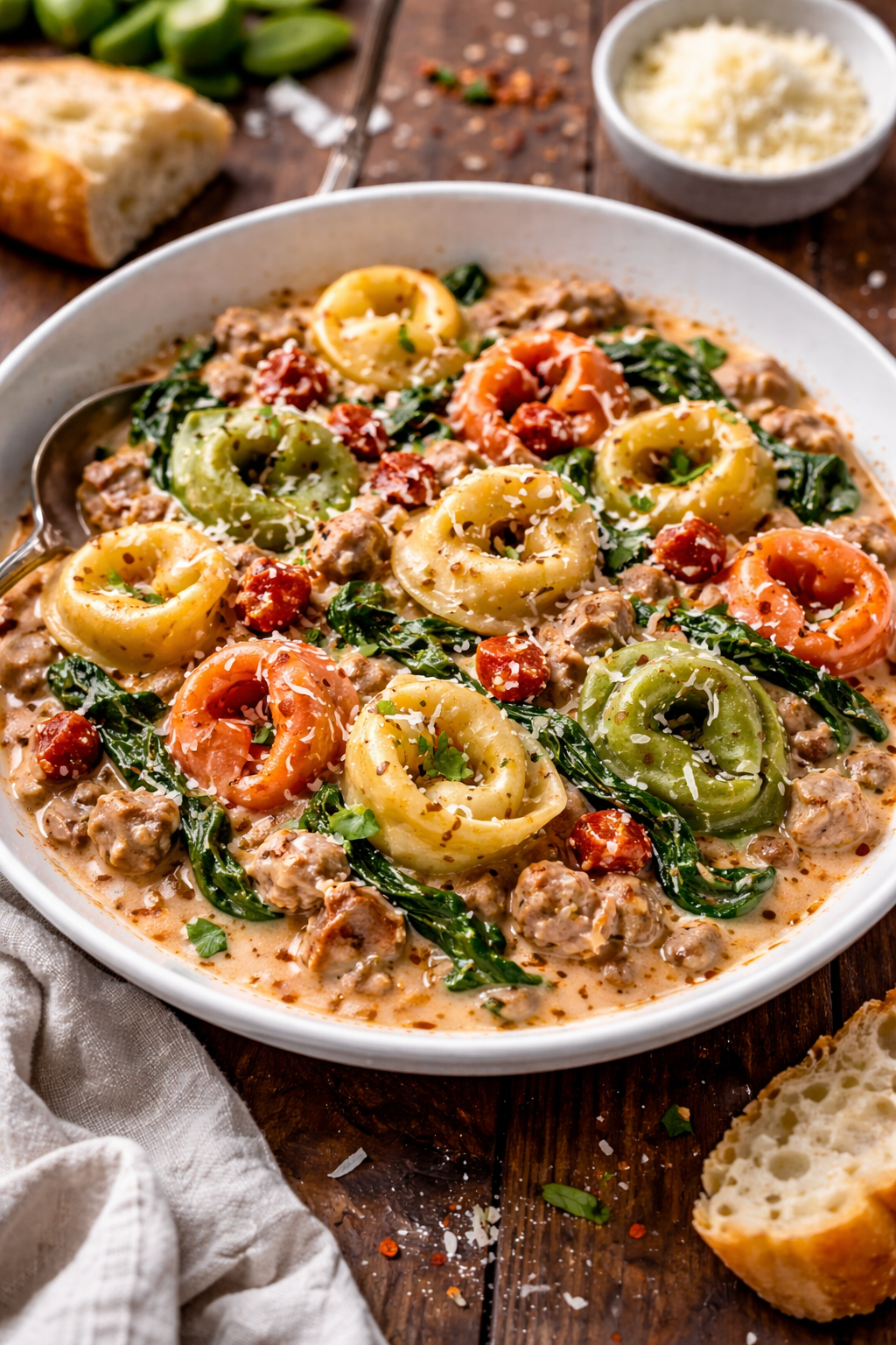 ⚠️ Important: Don’t add tortellini too early or it can get mushy.