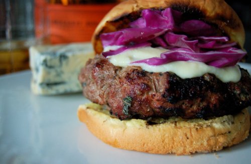 This Irish inspired hamburger is big and beefy and filled with rich tastes of whiskey and mustard sauce. Not to mention the earthy flavors of the crumbled bleu cheese nestled throughout the burger. Enjoy!