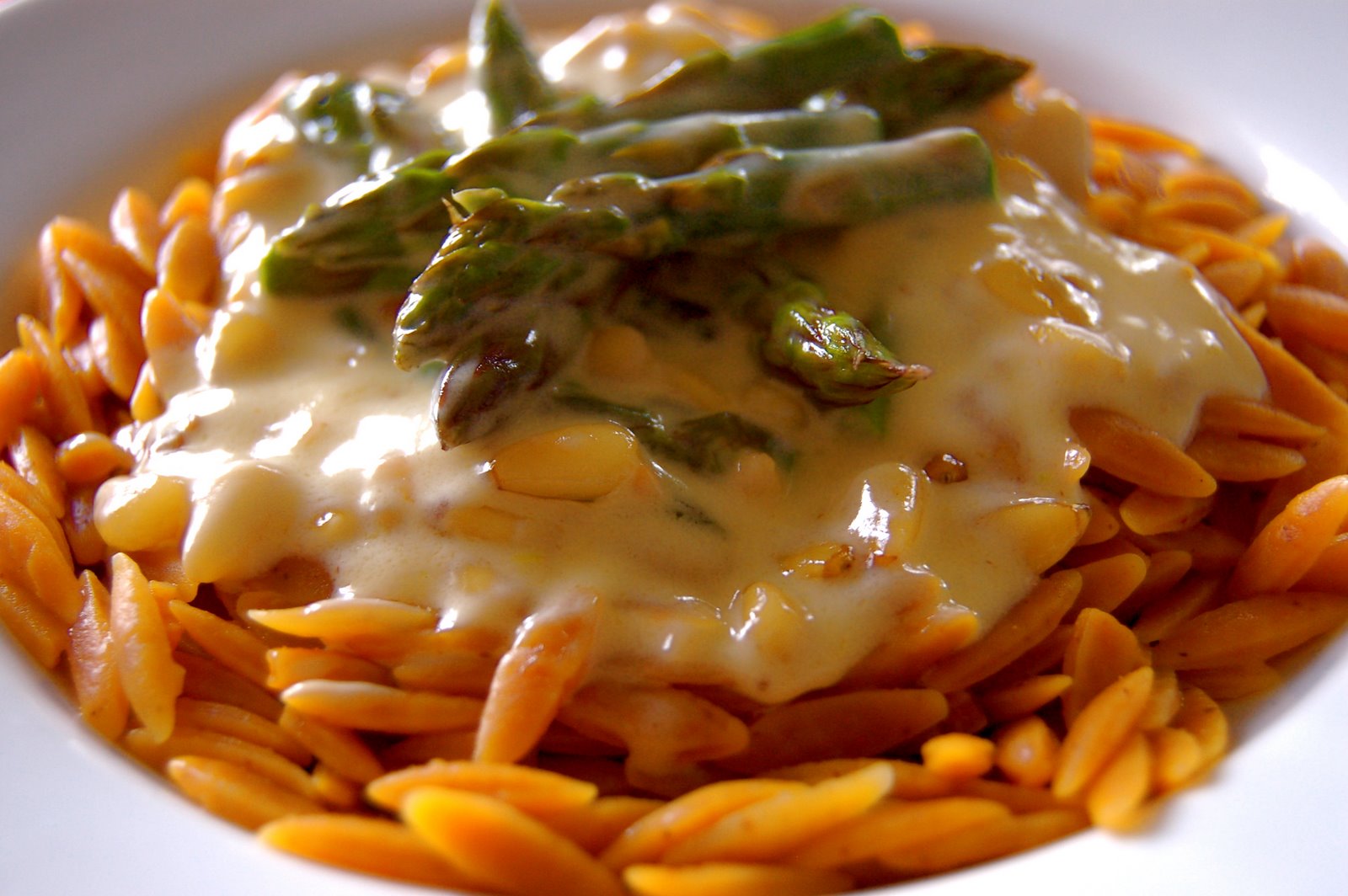 However, rosé has come a long way… and I’m starting to warm up to them… well, at least when they’re chilled (again Mom, really?). Try pairing this dish with this French Rosé Note Bleue Cotôs De Provence Rosé 2009 – it’s sweet and earthy. A perfect compliment to the buttery pasta and veggies and peppery sausage. Served chilled, about 47 degrees.